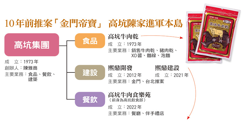 這位蓋豪宅的神祕人物,是熙鼎建設總經理陳忠祥,今年才32歲,而他的父親,正是在金門有「牛肉乾大王」稱號的高坑牛肉乾老闆陳雅商。1973年創業至今,陳雅商從一碗牛肉麵做到每年賣出逾3百萬包牛肉乾,不只賣到台灣,甚至出口海外。